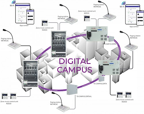 La nuova funzionalità CAMPUS nei sistemi EVAC è ideale in complessi composti da più edifici, come ad esempio: centri commerciali, o universitari, scuole, aeroporti, centri congressi, musei, biblioteche, metropolitane o strutture ospedaliere.