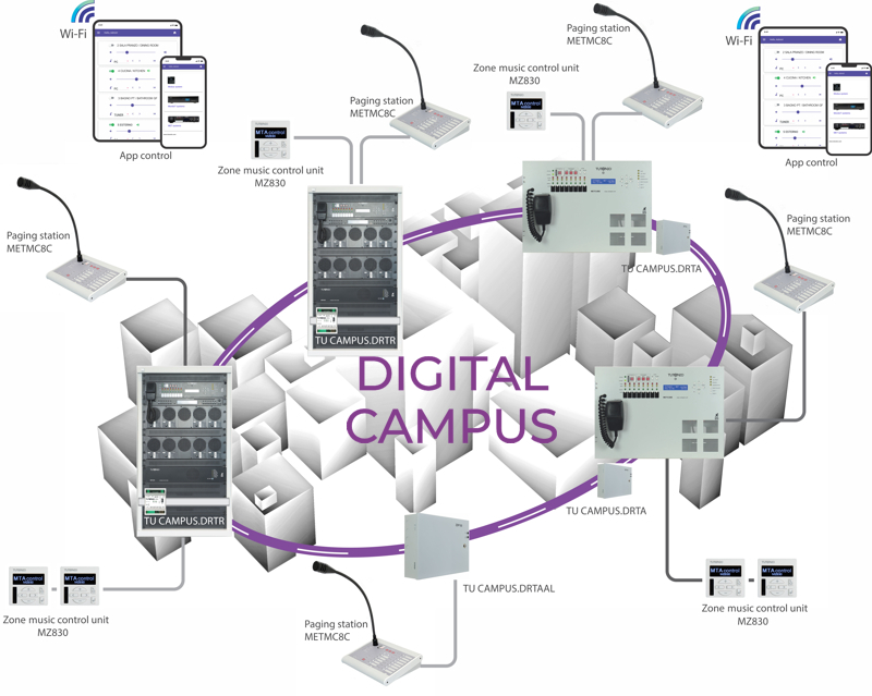 Espandibile e versatile, il sistema MET di Tutondo, permette l’utilizzo dell’impianto audio per la diffusione di messaggi microfonici generali, selettivi o di musica di sottofondo.